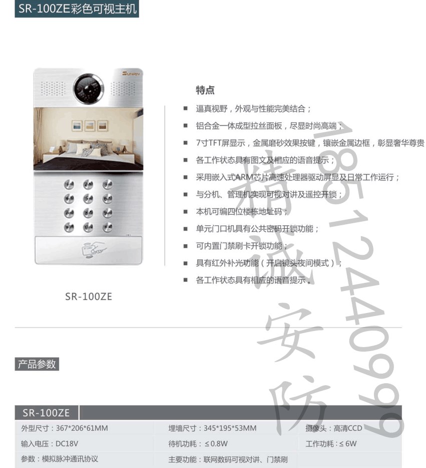 SR-100樓宇可視對講系統(tǒng)——安防商盟網(wǎng)安防產(chǎn)品